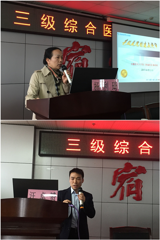 2017年3月15日,我院在门诊八楼会议室举办了“创建三级综合医院骨干培训班”。安徽医科大学第二附属医院副院长杨利琦、质量管理办公室主任汪卓赟、事业拓展部部长何水红在培训班上进行授课,并指导三级综合医院创建工作。我院全体中层干部及各科三级创建联络员共200余人参加了此次培训。