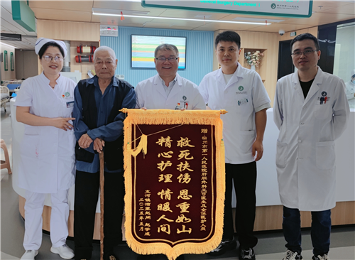 这些点滴关怀如春雨般浸润着老人孤寂的心灵。科室里的每一位医护人员都待他如亲人:查房时亲切的问候,治疗中贴心的照护,让老人感受到了前所未有的温暖与安稳。感激之情在他心中渐渐凝聚成一个朴素的愿望:他要为这个温暖的“家”送上一面锦旗!住院期间,老人便托人定制了一面鲜红的锦旗,上面“救死扶伤恩重如山,精心护理情暖人间”几个大字,无声诉说着这位八旬五保老人心中沉甸甸的谢意。