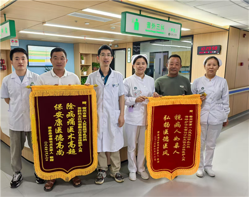 6月16日清晨,宿州市第一人民医院普外三科(甲乳)病区的忙碌被两面火红的锦旗“点亮”。锦旗上烫金大字“视病人如亲人,弘扬医德医风”、“除病痛医术高超,保安康医德高尚”在晨光中闪耀,字句里饱含着患者最真挚的感恩。