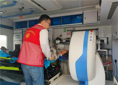 5G赋能,移动急救护健康白色的“5G移动卒中单元”救护车宛如一座移动的急救堡垒,成为活动现场的焦点。车载CT、快速检验设备一应俱全,血压血糖检测、颈动脉超声筛查、NIHSS评估等工作有序开展。依托5G网络,检查数据实时传回医院卒中中心,专家远程判读,让村民在家门口就能享受到与市区一样的专业急救评估,大大缩短了卒中救治时间。