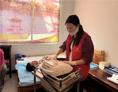 党旗飘扬,党员冲锋在前活动现场,急救中心党支部的党员们佩戴党徽,成为一道亮眼的风景线。支部书记带头,党员们分工协作,布置场地、引导村民、维持秩序,每一个环节都有条不紊。一位老党员医生一边耐心地为村民讲解“中风120”识别口诀,一边细致地做着检查,汗水湿透了白大褂,却丝毫不减服务热情。他们用实际行动,将党的关怀送到村民身边。