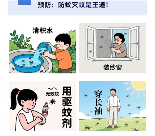 2.做好环境卫生,清除积水(伊蚊幼虫滋生地),减少蚊子滋生;