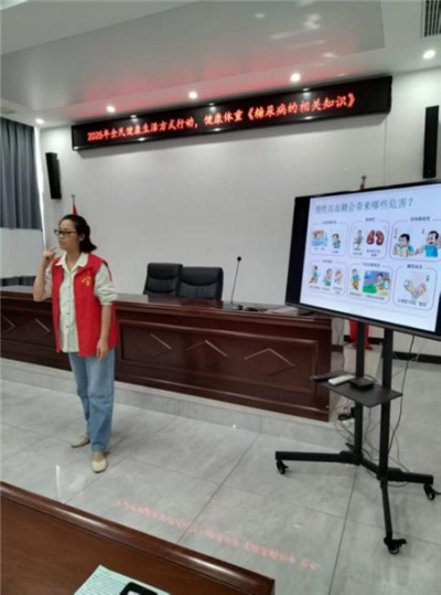 九月是全民健康生活方式宣传月,为深入推进全民健康生活方式行动,把专业的健康知识送到居民“家门口”,切实提升社区居民健康素养,9月9日下午,我院公共卫生科精心组织了一场健康讲座。活动特别邀请内分泌科、骨一科、膳食科三位专家,走进华地社区居委会,围绕“培养健康生活方式,筑牢健康家庭基石”主题,用通俗易懂的语言和实用的健康技巧,为社区居民们带来了满满“健康干货”,现场氛围热烈又温馨。