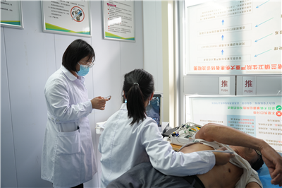 活动现场,医护人员有条不紊地为群众提供免费服务:耐心测量血压,细致记录数据;操作设备开展心电图检查,及时捕捉心脏电活动信息;借助专业仪器,完成心彩超检查,深入评估心脏结构与功能。面对前来咨询的群众,王波副院长、闫宜亮主任、孔劲松主任耐心倾听病史,细致分析检查结果,针对高血压、心律失常等常见心脏问题,给出个性化治疗建议与健康指导,还科普了心脏疾病预防知识,帮助群众提升健康意识。