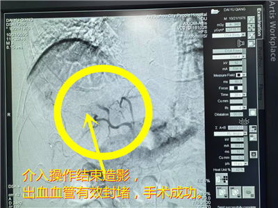 接到会诊通知后,肿瘤一科杜尚云副主任医师火速赶到急诊科。在详细查看患者病情、分析检查结果后,他当机立断:“必须立即行肝动脉栓塞术,快速封堵出血血管,否则患者随时有生命危险!”指令下达后,医院多学科协作机制迅速启动。导管室接到通知后,保障团队以最快速度到位,术前准备、设备调试、耗材清点等工作同步推进,全程无缝衔接,只为给患者争取每一分每一秒的救治时间。手术台上,肿瘤一科杜尚云医师、陈宝华医师凭借丰富的临床经验和精湛的操作技术,在影像设备的精准引导下,小心翼翼地将栓塞材料送达患者出血的肝动脉部位。随着出血血管被成功封堵,患者的血压逐渐从危险线稳步回升,生命体征慢慢趋于稳定。当手术成功结束的消息传来,在场所有医护人员悬着的心终于落了地。