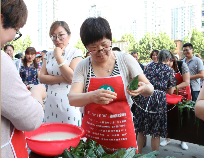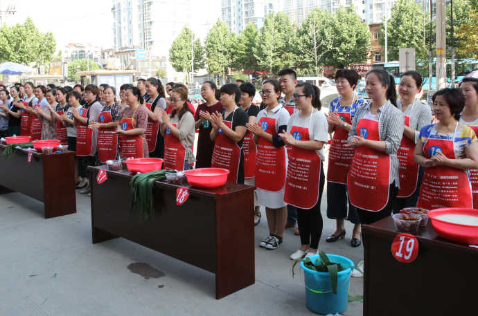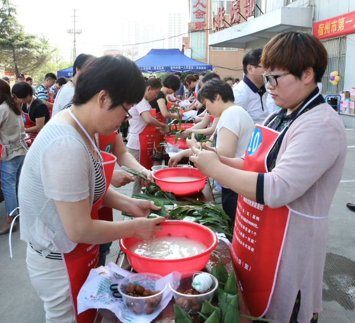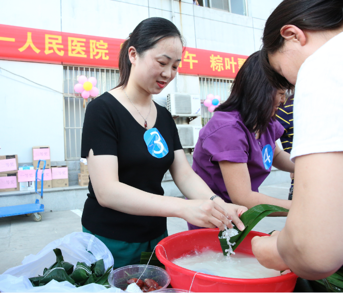 为了加强医院文化建设,丰富广大职工业余文化生活,在端午节即将来临之际,5月26日下午,宿州市第一人民医院工会组织职工在医院门诊楼前举行“浓情端午,粽叶飘香”包粽子比赛活动,来自临床、医技等科室40余人参赛,孟令盘院长、王秉璞书记、李秀君主席等院领导们亲临比赛现场,现场气氛热烈。