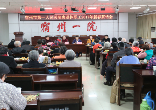 神猴辞岁去,金鸡报春来。新春佳节即将来临,在院工会和办公室精心组织下,1月24日下午,宿州市第一人民医院工会在门诊楼八楼多功能会议室召开我院离退休职工2017年新春茶话会。院领导孟令盘、王秉璞、李秀君、邵明玉、张飞,以及离退休职工近百余人欢聚一堂,喜迎新春。