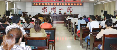2016年6月24日,宿州市市级继续教育项目——《临床病理学新进展》培训班在宿州市第一人民医院多功能会议室成功举办。本次培训班由宿州市病理学会和宿州市第一人民医院主办。会议邀请了安徽省医学会病理学分会主任委员、安徽省临床病理质控中心主任、安徽医科大学病理学教研室主任孟刚教授,安徽省医学会病理学分会常委、蚌埠医学院病理学教研室主任、蚌埠医学院第一第二附属医院病理科主任冯振中教授亲临授课。宿州市第一人民医院和埇桥区各乡镇卫生院技术骨干近200人参加学习。
