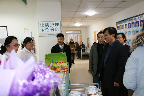 图为院领导看望慰问春节坚守在一线工作岗位的医护人员