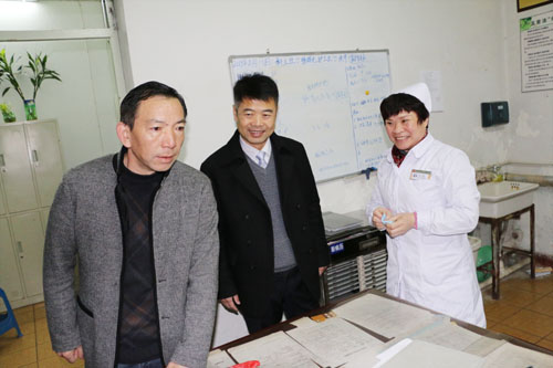 腊梅香送浓浓情,爆竹声迎融融福。2015年2月19日(大年初一)上午,宿州市第一人民医院党政领导班子全体成员,在院长孟令盘、党委书记王秉璞的带领下,来到急诊科、临床医技等科室,向春节坚守在临床一线工作岗位的医护人员表示亲切慰问。每到一处,院领导都亲切地与值班人员一一握手,感谢他们为医院的发展、为病员的健康辛勤工作和所做出的奉献,向各位在春节期间仍坚持工作在岗位上的职工致以新春佳节的美好祝愿,并对他们“顾大家舍小家”的奉献精神以及为维护医院节日期间的正常秩序所作的努力和贡献表示真诚的感谢。同时,希望大家在繁忙的工作中保重身体,确保春节期间医疗和院区安全,为全区人民过上一个欢乐、祥和的春节提供坚强的健康保障。领导阵阵温馨的话语,给值班的职工们送来融融暖意。院领导所到科室的负责人和医护人员纷纷表示,为了病员的早日康复,一定坚守岗位,对医疗工作尽职尽责,甘愿奉献。