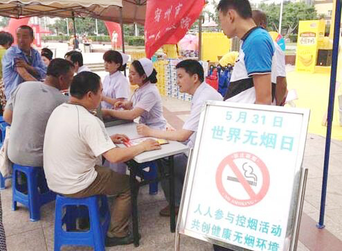 5月31日是第27个“世界无烟日”。为了做好禁烟工作,告诫广大市民提高戒烟意识,5月31日上午,宿州市第一人民医院组织医疗专家在宿城二中广场举行控烟、戒烟义诊宣传活动。共为150多名群众提供健康咨询,发放宣传资料400余份。