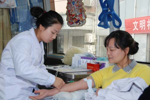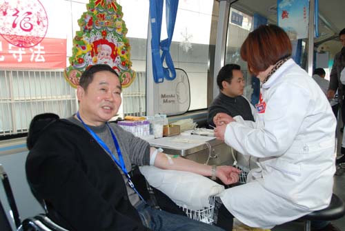 献血是爱,献血是奉献,献血是保障。2014年1月11日上午,宿州市中心血站的采血车来到宿州市第一人民医院门诊楼下,9点不到就有很多医务人员来到采血车前参加义务献血,采血车旁大家井然有秩地领取义务献血表、测量血型、检测血样,做着献血前准备。检验合格的献血者们踏上捐血车,坐上采血椅,伸出手臂,献出一袋袋承载着爱心的血液。我院急诊室主任程家屋和爱人孟春夫妇俩一起献血;院感染办副主任王辉、外一科护士长征桂荣等都毫不犹豫地伸出了手臂。