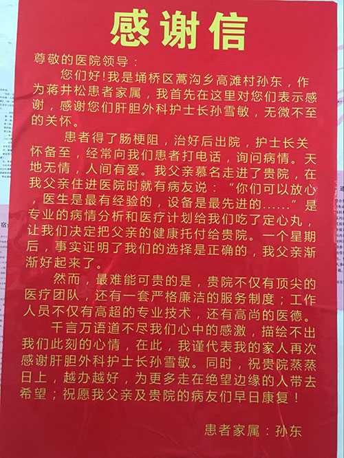 肝胆外科感谢信
