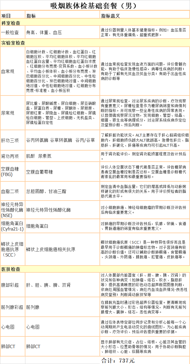 吸烟族体检基础套餐