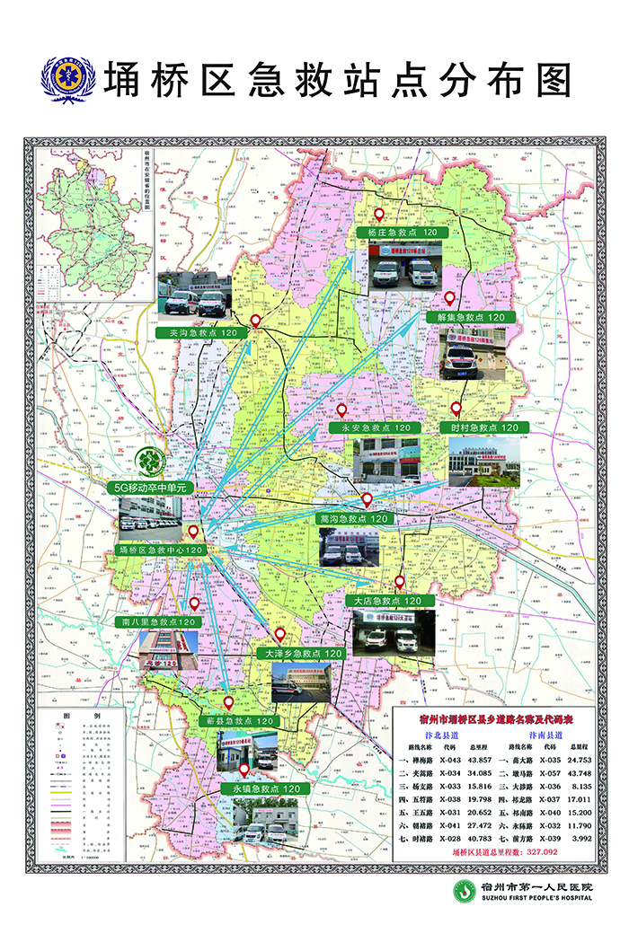 埇桥急救已建成“功能完善、布局合理、反应快捷、指挥统一、处置高效”的市、县、乡三级院前医疗急救工作体系和急救医疗网络,达到城区平均急救反应间期(接听呼救电话到救护车到达现场时间)10分钟,城市郊区、农村等地区平均急救反应间期15-20分钟,更好地保障全区人民群众的身体健康和生命安全!