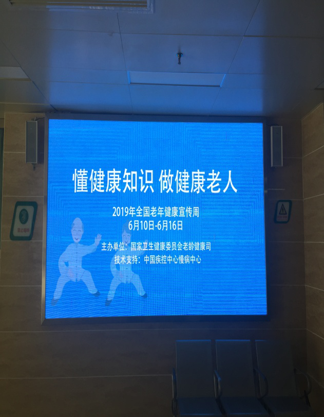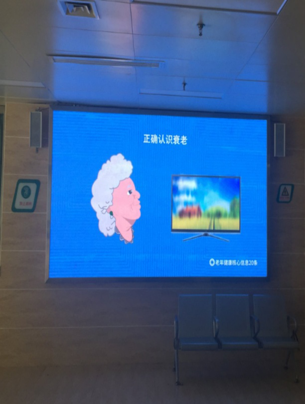 我院还在电子屏幕上滚动播出“懂健康知识,做健康老人”的视频,普及健康知识,让老年人懂得更多的保健知识,来提高老年人的生活质量,让他们真正的老有所养,老有所医。
