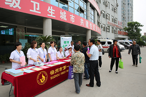 呼吸内科王海龙主任现场进行烟草危害和戒烟方面知识以及健康生活方式知识的咨询、指导,工作人员现场免费发放“青少年吸烟的危害”、“戒烟的好处”、 “吸烟的危害”、 “吸烟与冠心病“、“吸烟与呼吸系统疾病”等宣传资料达1000份,医务人员现场发现吸烟患者予以及时劝阻,并介绍吸烟的危害,导医台护士免费为前来咨询者测量血压,我院电子屏同时播放“送烟=送危害”、“无烟家庭”等吸烟危害的视屏,使现场咨询者都能认识到烟草带来的严重危害,远离烟草。