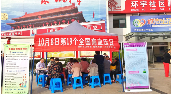 2016年10月8日是第19个“全国高血压日”,根据我市、区卫计委的相关要求,我院于10月8日安排心血管内科医护人员共10名,在西关街道环宇社区举办以 “知晓您的血压”为主题的健康咨询义诊宣传活动。