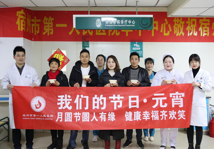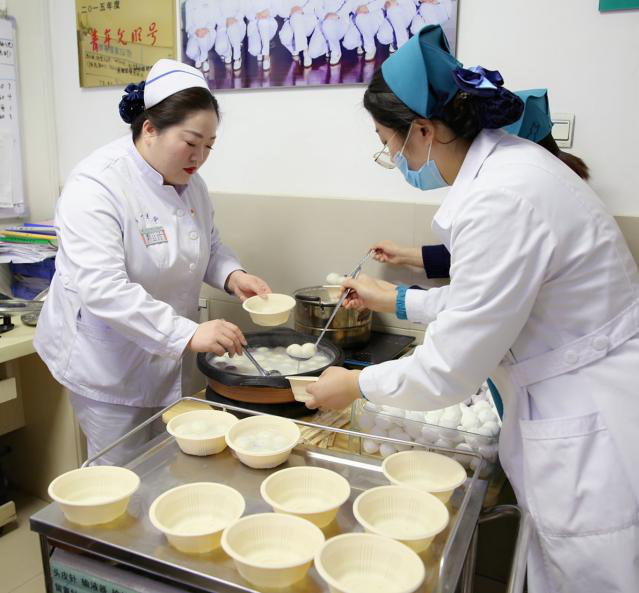 在这个人们都忙着逛灯会的热闹日子里,有一群人仍然坚守在工作岗位上,那就是辛勤的医务工作者们。元宵佳节,除了猜灯谜,看花灯,最必不可少的自然是吃香甜软糯的元宵了。脑血管病诊疗中心的医护人员,这一天也给住院患者们精心准备了香甜的元宵,大家在马修尧主任的带领下,亲自把一碗碗热气腾腾的元宵递到患者和家属们的手里,并表达了节日的问候和健康的祝福。收到元宵的患者和家属非常高兴,尤其是几个贪甜的小孩,更是迫不及待的开吃了,而马主任也不忘提醒患者:“吃元宵主要是一种节日的氛围,元宵是糯米做的,肠胃功能不好的人,一定尽量少吃、慢慢吃,并且有木糖醇的元宵是特意为血糖高的患者准备的。”