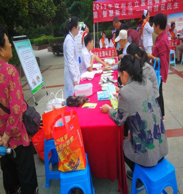 2019.9.17宿州市第一人民医院联合市、区卫健委、疾控中心及多家医院在宿州市雪峰公园西门广场组织开展“三减三健 助力健康中国行动”的宣传活动。