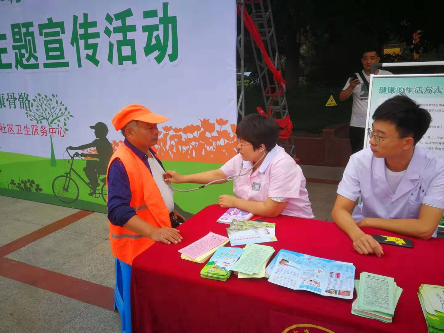 活动现场设立了咨询台、宣传展板,发放健康素养、全民健康生活方式、控烟等宣传单、折页。两名内科医务人员现场咨询,详细解答群众提出的疑难问题和心中困惑。活动过程中医生们就 “减盐、减油、减糖、健康口腔、健康体重、健康骨骼”的科学、健康的理念与知识详细讲解,强调健康生活方式是预防慢性病的重要措施。义诊桌被热情的居民所包围,场面热闹有序。医务人员带着感情开展工作,他们免费为居民测量血压,解答疑问。近距离的沟通,及时发现居民的潜在病情;普及健康知识、对增强疾病预防意识,促进身体健康。