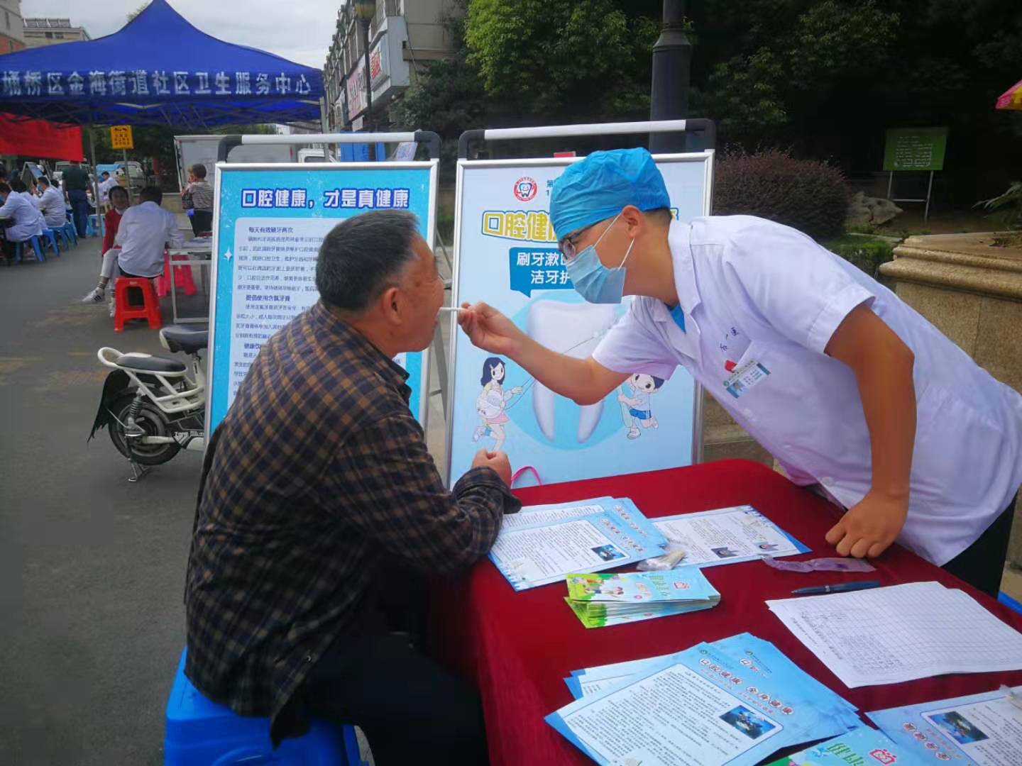 活动现场设立了咨询台、宣传展板,发放口腔健康、全民健康生活方式等宣传单、折页。两名口腔科医生现场咨询,详细解答群众提出的关于口腔疾病问题。牙齿出现问题,会对人们的正常生活造成极大的影响。一颗牙就是一个器官,牙齿健康不仅关系到全身健康的诸多方面,同时也是现代人健康与文明的标志。活动过程中 医生们还现场用一次性口腔护理包及一次性口镜进行检查,现场我们还发放小礼品。