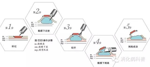内镜黏膜下剥离术(ESD)是在内镜下黏膜切除术(EMR)基础上发展而来的新技术,治疗主要针对早期消化道癌和癌前病变。方法是内镜粘膜下注射基础上,利用几种特殊的高频电刀将病变所在的黏膜剥离,从而达到治疗目的的内镜下操作技术。通过ESD可以完整地切除病变,达到根治消化道肿瘤的效果。