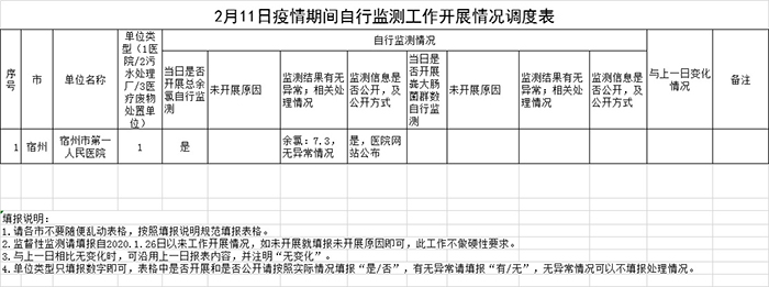 2月11日疫情期间自行监测工作开展情况调度表