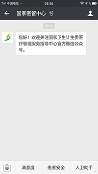 欢迎您参与国家卫生计生委医管中心“患者满意度调查”