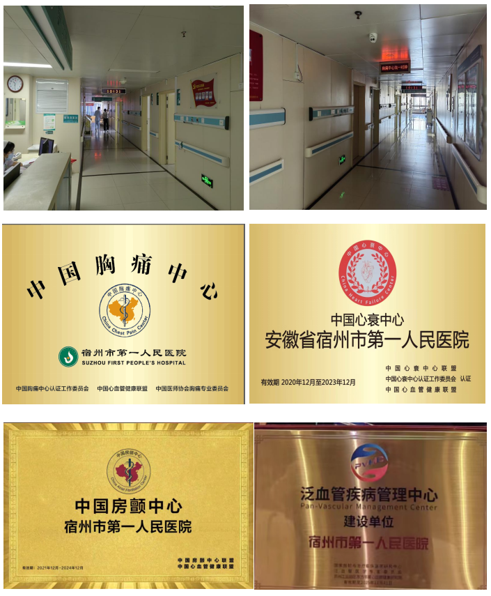 设备上拥有先进的进口德国西门子平板DSA及GE平板DSA各一台,64排128层螺旋CT,心脏彩色多普勒超声诊断仪,主动脉内球囊反搏仪,32导电生理记录仪,射频消融仪,除颤仪,进口血管内超声(IVUS)及旋磨仪各一台,冠脉光学相干断层扫描(OCT)仪,动态血压及动态心电记录仪等先进的医疗设备。2019年4月获评国家级标准版胸痛中心; 2020年11月获评国家级标准版心衰中心;2021年11月获评国家级标准版房颤中心;2023年12月通过国家级泛血管管理中心建设单位;2024年6月通过国家级体外反搏中心。2022年获国家卫生健康技术推广项目《体外反搏在心血管疾病康复中的推广应用》 ,经中国民族卫生协会专家论证,评为“卫生健康技术重点推广项目”。